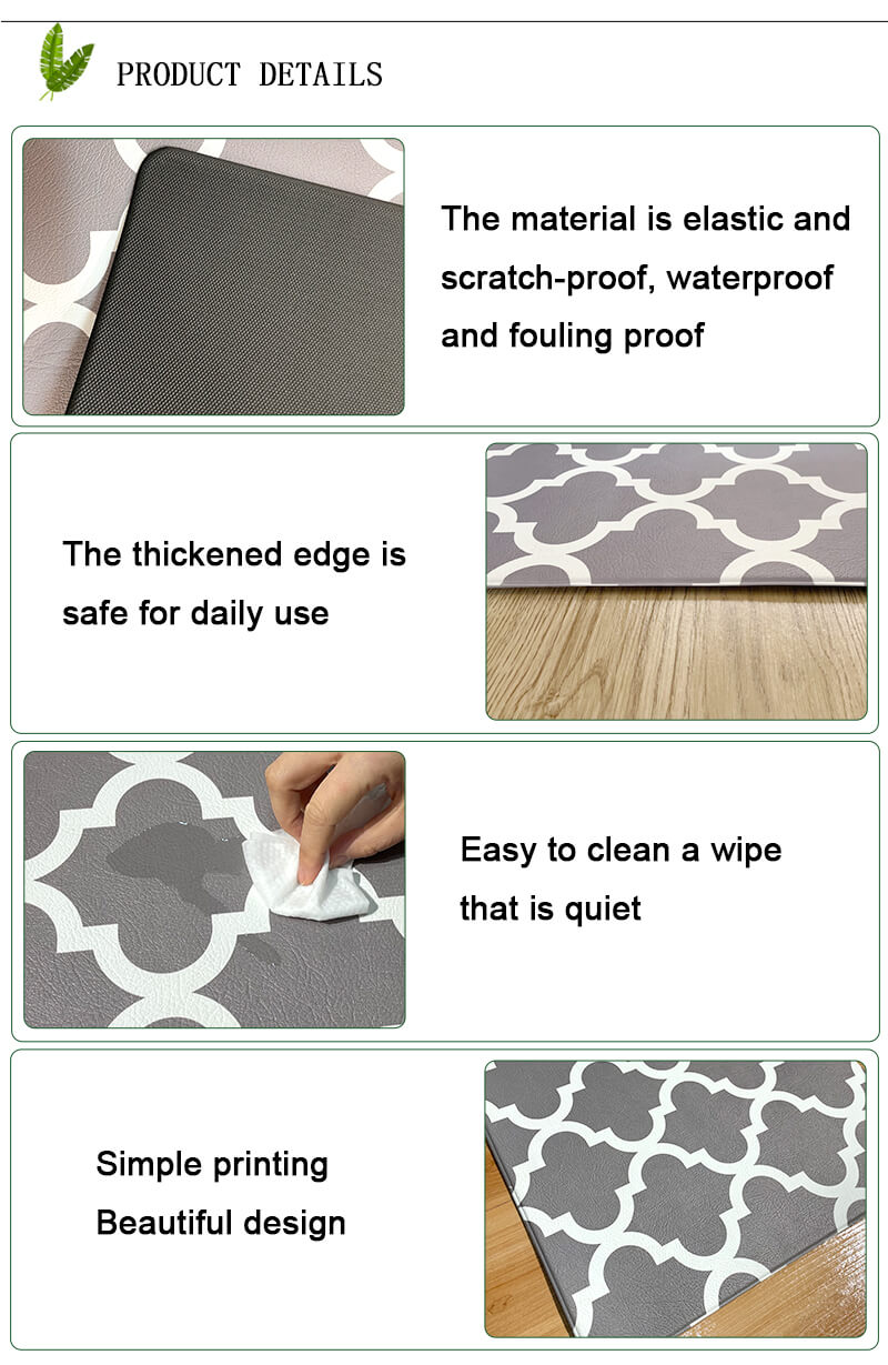 Produktdetails: Dieses Produkt besteht aus PVC, kann wiederholt gewaschen und verwendet werden, mit Schlitten, wasserdichtem, Anti-Fouling, Anti-Oil, Verschleiß und anderen Funktionen. Es kann Ihnen helfen, Ihr Küchenboden sauber zu halten, viel Wasser auf dem Boden zu verhindern, leicht zu reinigen, ist Ihr Zuhause gut Helper.